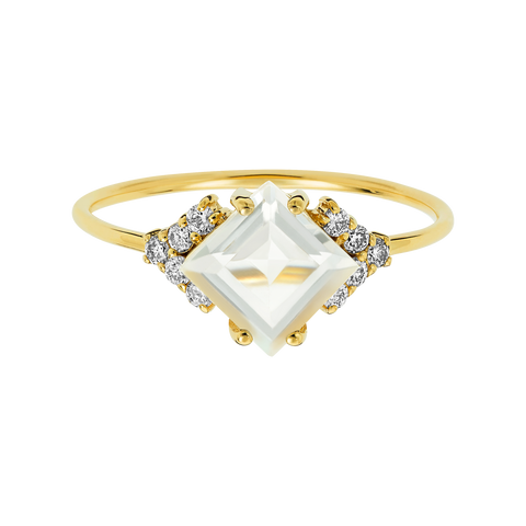 Asteria, meaning Greek Goddess of the stars. This ring is perfect for the beaming goddess in you! Handcrafted in 14k yellow gold, a gorgeous deep teal Montana sapphire and brilliant cut diamond stardust.